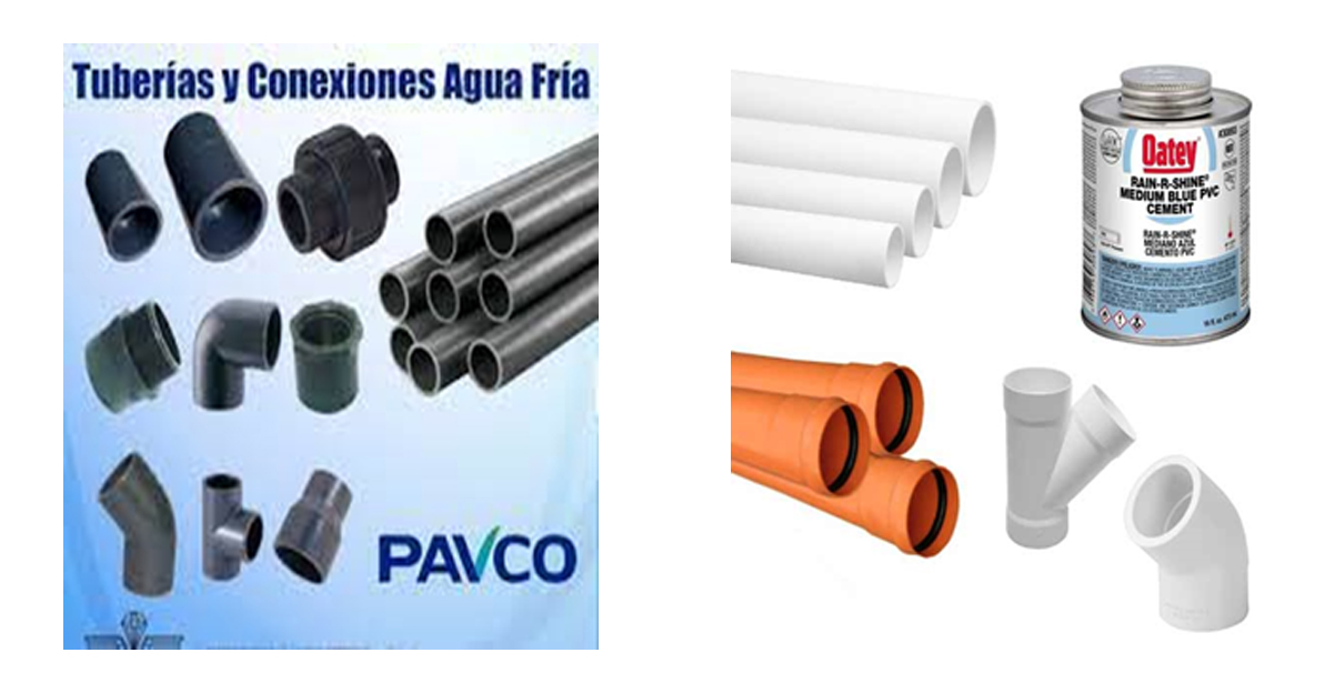TUBERÍAS Y CONEXIONES DE PVC PARA AGUA FRIA Y CPVC PARA AGUA CALIENTE Y SANITARIAS PARA DESAGUE, Y CONEXIONES ELECTRICAS CODOS, TEES, REDUCCIONES, YEES, TAPON MACHO, TAPON HEMBRA, MARCA PAVCO, PLASTICA, TUBOS DE ACERO, CELULA SCH40, SCH80, PLATINAS, PLANCHAS Y TUBOS DE Fº Gº Y DE Fº Nº CON Y SIN COSTURA.